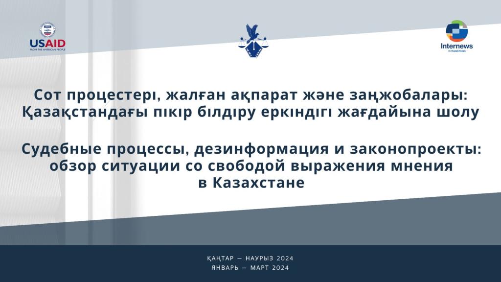08/04/2024 ОБЗОР: СУДЕБНЫЕ ПРОЦЕССЫ, ДЕЗИНФОРМАЦИЯ И ЗАКОНОПРОЕКТЫ: ОБЗОР СИТУАЦИИ СО СВОБОДОЙ ВЫРАЖЕНИЯ МНЕНИЯ В КАЗАХСТАНЕ Подробнее Подробнее