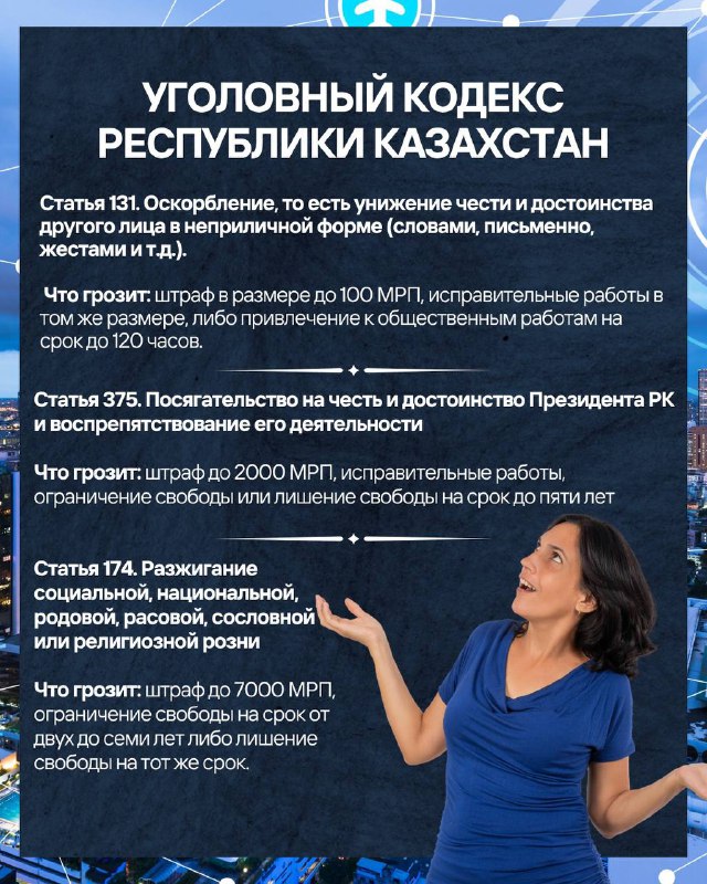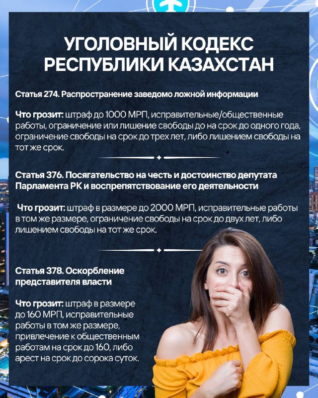 Говорить можно многое, но не всё сойдет с рук. От безобидной, на первый взгляд, «шутки» до уголовной статьи один пост, комментарий или даже фраза. Разбираем, за какие слова и высказывания в Казахстане можно реально понести ответственность, и даже сесть.