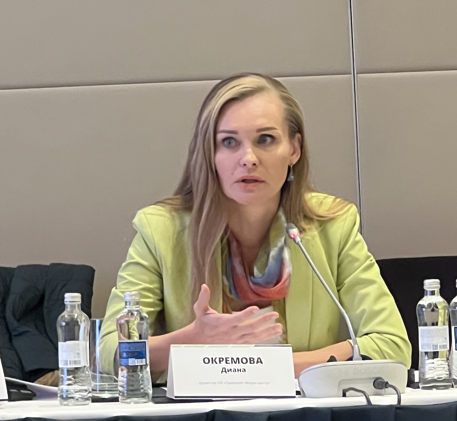Қазіргі заң жобасында егер ақпарат құралдарының жарғылық капиталының 50%-дан астамы мемлекетке тиесілі болса, ол мемлекеттік деп есептелінеді делінген. Бұл дұрыс емес. Өйткені 51%-ы мемлекетке тиесілі, қалған 49%-ы кәсіпкерге тиесілі болса, мемлекеттің қаржысы негізінде қәсіпкердің баюына жағдай жасаймыз ғой деді Ольга Диденко.