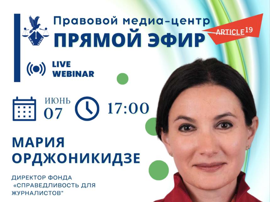 7 июня в 17:00 состоится онлайн-интервью с Директором фонда «Справедливость для журналистов» — Марией Орджоникидзе.